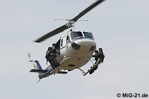 Eröffnet wurde das Flugprogramm von Fallschirmspringern, die von diesem Mi-8 abgesetzt wurden.