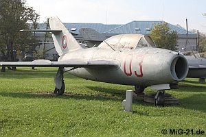 MiG-21. Dabei sind die beiden MiG-21bis, deren taktische Nummer mit 5 beginnt, ebenso Exoten wie die ausgestellte MiG-21PFM 67 - gehören doch alle drei zu sowjetischen