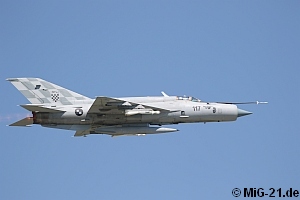 ... bis kurz vor Mittag MiG-Triebwerke zu hören sind und - Überraschung - das QRA-Paar, bestehend aus den MiG-21bisD 116 (hier im Bild) und 133 startet, ...